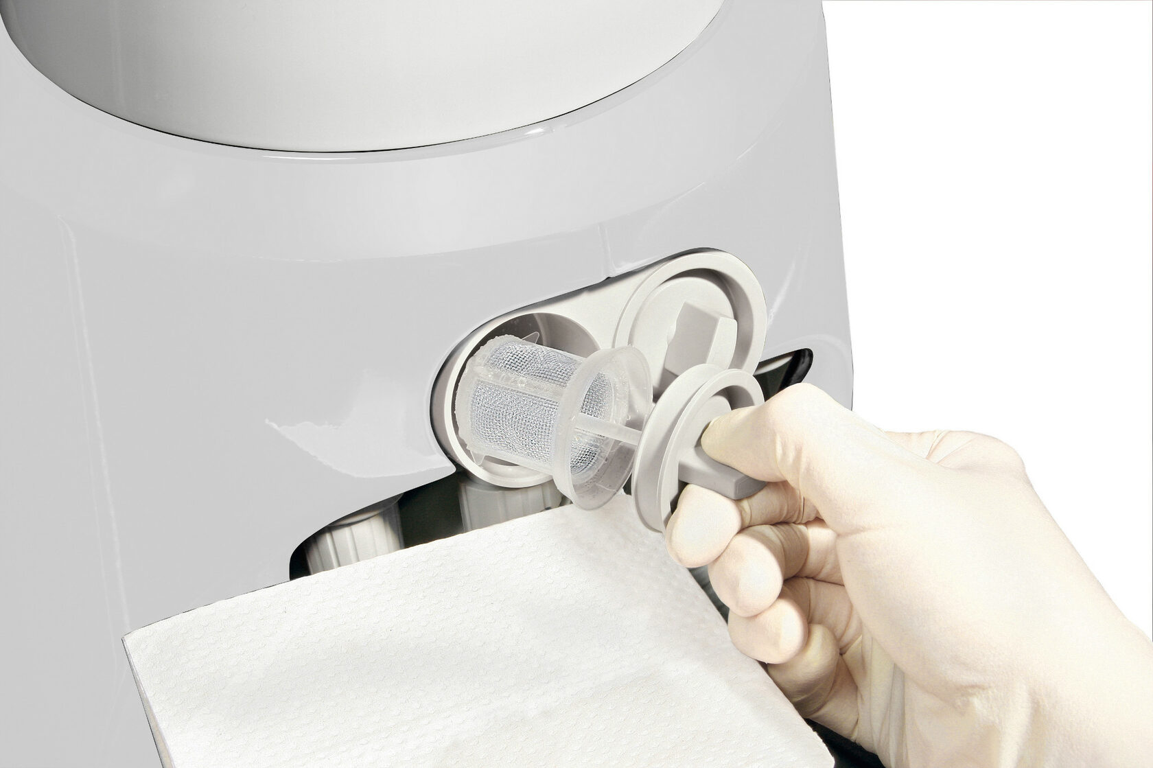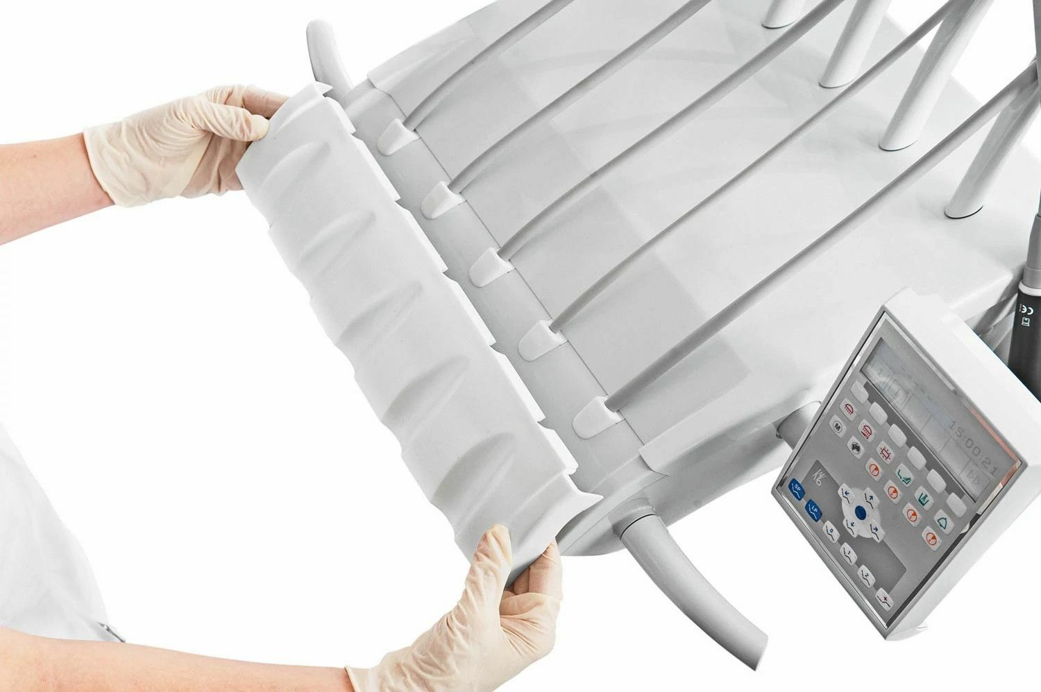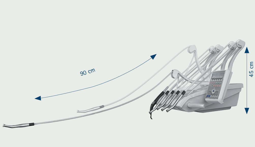 Ручки, силиконовые коврики, плевательницы, лотки для инструментов и зажимы поворотного рычага можно легко демонтировать для проведения дезинфекции. Благодаря гигиеническим ручкам, всасывающие фильтры можно легко и безопасно заменить.