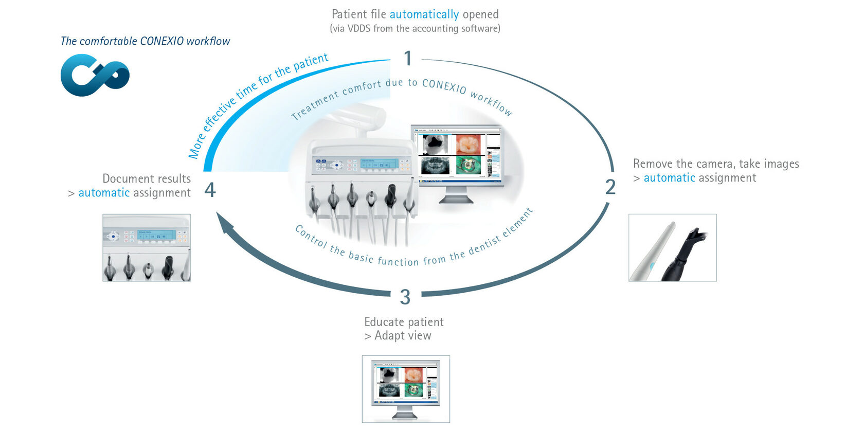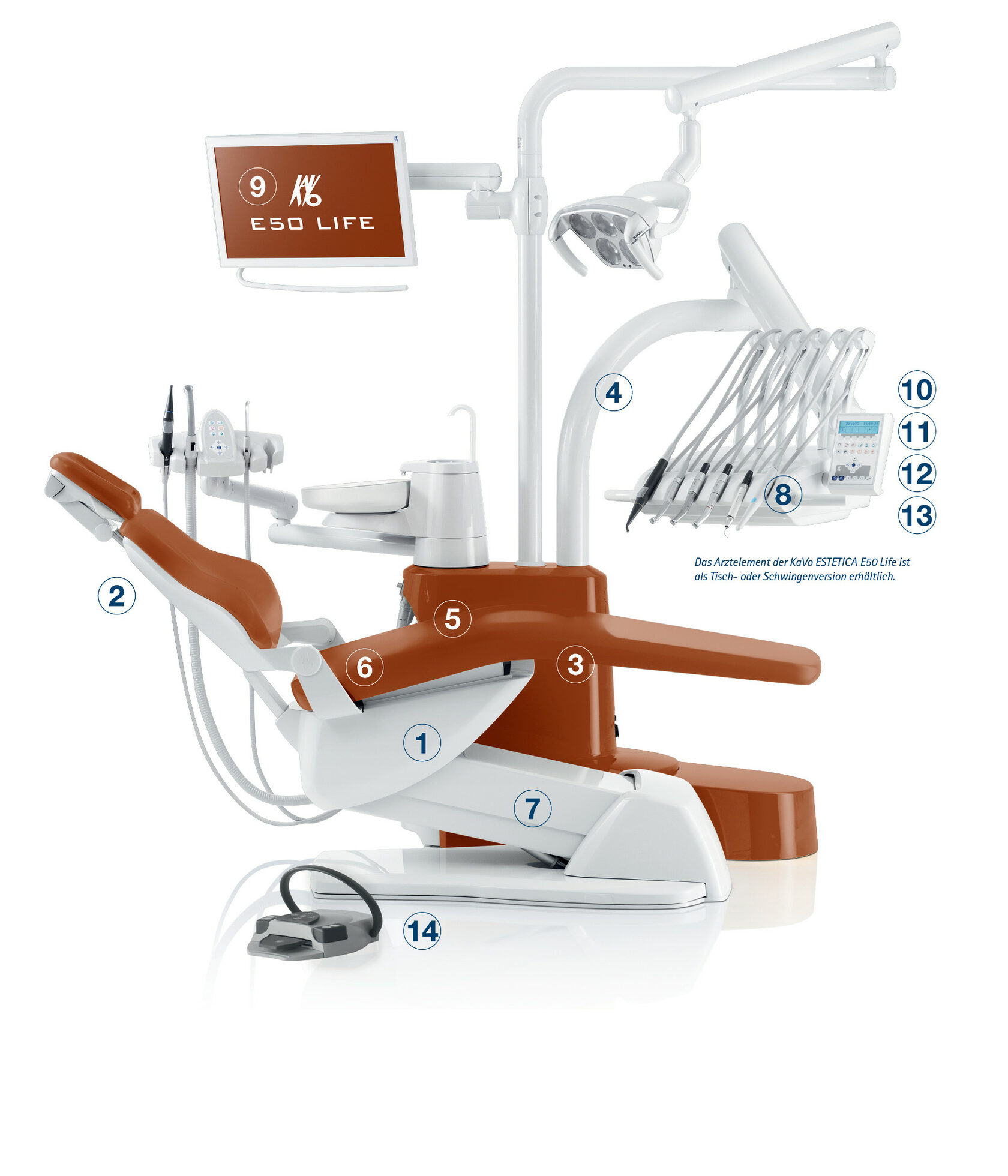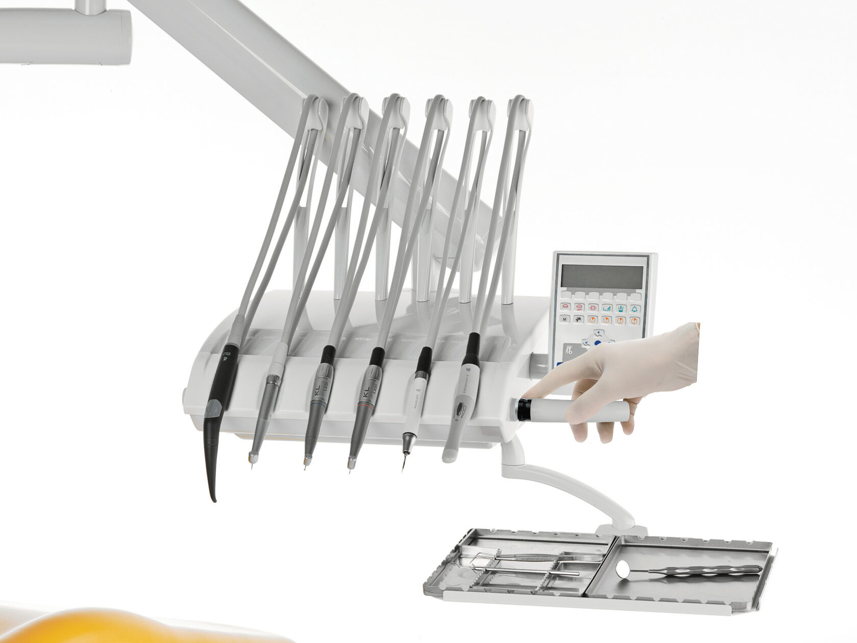Ручки, силиконовые коврики, плевательницы, лотки для инструментов и зажимы поворотного рычага можно легко демонтировать для проведения дезинфекции. Благодаря гигиеническим ручкам, всасывающие фильтры можно легко и безопасно заменить.
